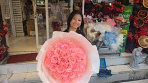 Valentines Day Atmosphere Buzzes in Sri Racha as Flower Prices Rise Modestly, Teens Flock to Buy Roses for Loved Ones