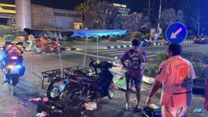 Three People Including Chinese Tourist on Motorbike Taxi Injured in Major Traffic Accident in Pattaya on Sukhumvit Road