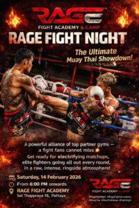 Pattaya, Thailand – Excitement is building in the heart of Pattaya as fight fans count down to Rage Fight Night, a high-energy Muay Thai event set to ignite the ring on Saturday, February 14, 2026. Hosted at Rage Fight Academy in Soi Thappraya 15 in Jomtien (Soi Norway), the evening promises an authentic fight night […]