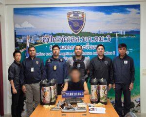 Pattaya, Chonburi Province – Officers from Immigration Police Division 3 (Immigration Bureau Region 3) conducted a raid on March 11th, targeting a residence in central Pattaya, leading to the arrest of a Chinese national suspected of running an online operation selling nitrous oxide, commonly known as “laughing gas”, along with illicit substances and vape products […]